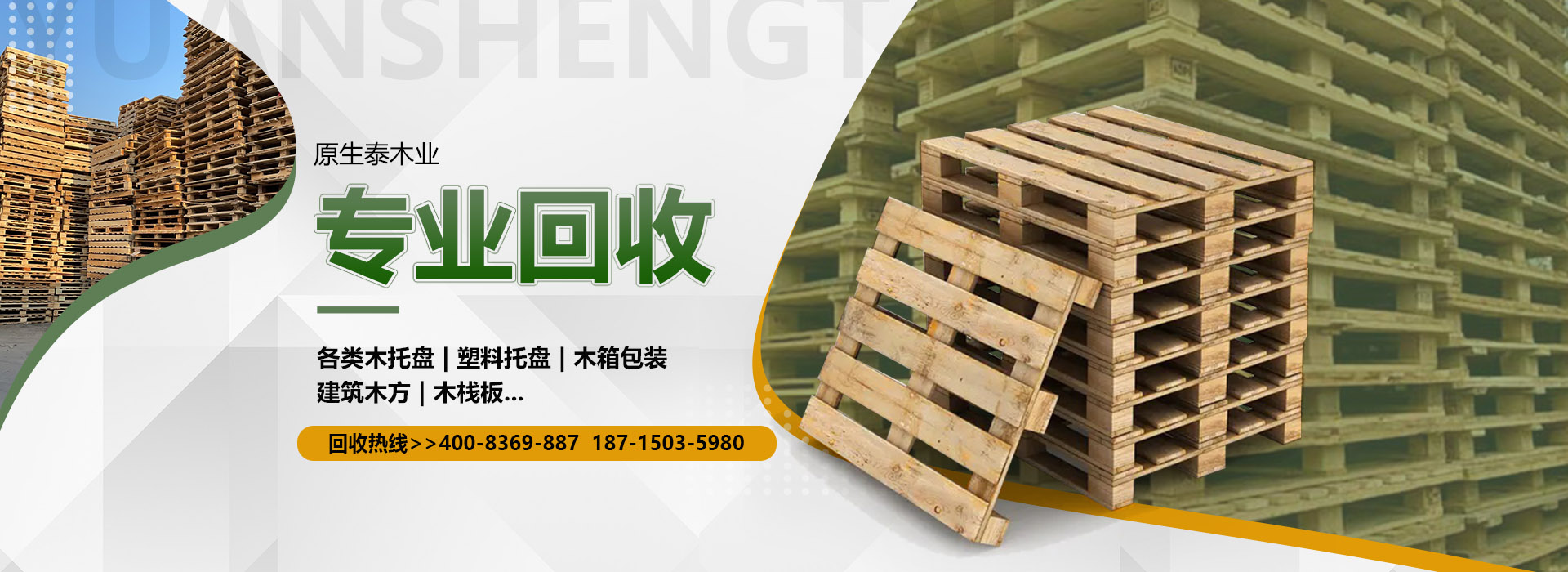 關(guān)于我們原生泰木業(yè)有限公司是一家服務(wù)各市的企業(yè),本公司是以回收各類二手廢舊木材為主,主要回收各類木托盤、塑料托盤、木箱包裝、建筑木方木板、木棧板等等。本公司收購(gòu)價(jià)格以托盤、木箱木材的規(guī)格、使用情形、新舊程度、材質(zhì)為估價(jià)標(biāo)準(zhǔn),如果您有意向出售您的閑置木制品以及塑料制品,請(qǐng)您聯(lián)系我們時(shí)告知其數(shù)量、尺寸、型式、使用情形,我們免費(fèi)為您提供電話估價(jià)或到現(xiàn)場(chǎng)報(bào)價(jià)。本公司是一家經(jīng)工商局嚴(yán)格注冊(cè)的正規(guī)木制品回收公司,回收木托盤、木箱包裝致力于環(huán)保建設(shè)、綠色合作以求雙贏。同時(shí)原生泰木業(yè)公司也對(duì)各地范圍出售二手木托盤、二手塑料托盤、各種二手木制品。及時(shí)送貨上門,價(jià)格公道。公司下轄木材加工廠,組裝廠,并備有大型標(biāo)準(zhǔn)烘房,多功能平板刨,壓刨,挖槽,機(jī)械設(shè)備等。產(chǎn)品主要生產(chǎn)各類木托盤、木包裝箱銷往國(guó)內(nèi)大中型城市并隨貨通行出口國(guó)外。本公司將以豐富的知識(shí),提供合適的方案來服務(wù)和滿足每一用戶不同的需求,品質(zhì)至上,誠(chéng)實(shí)守信。